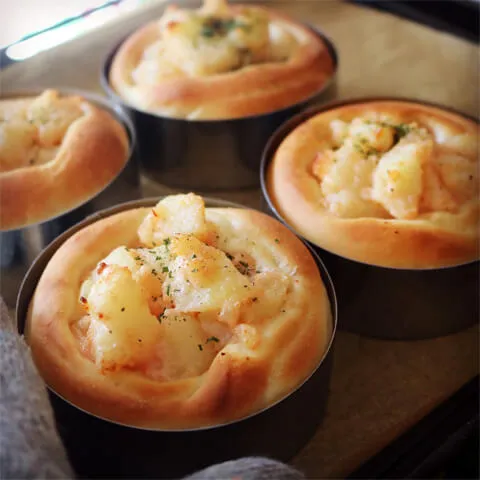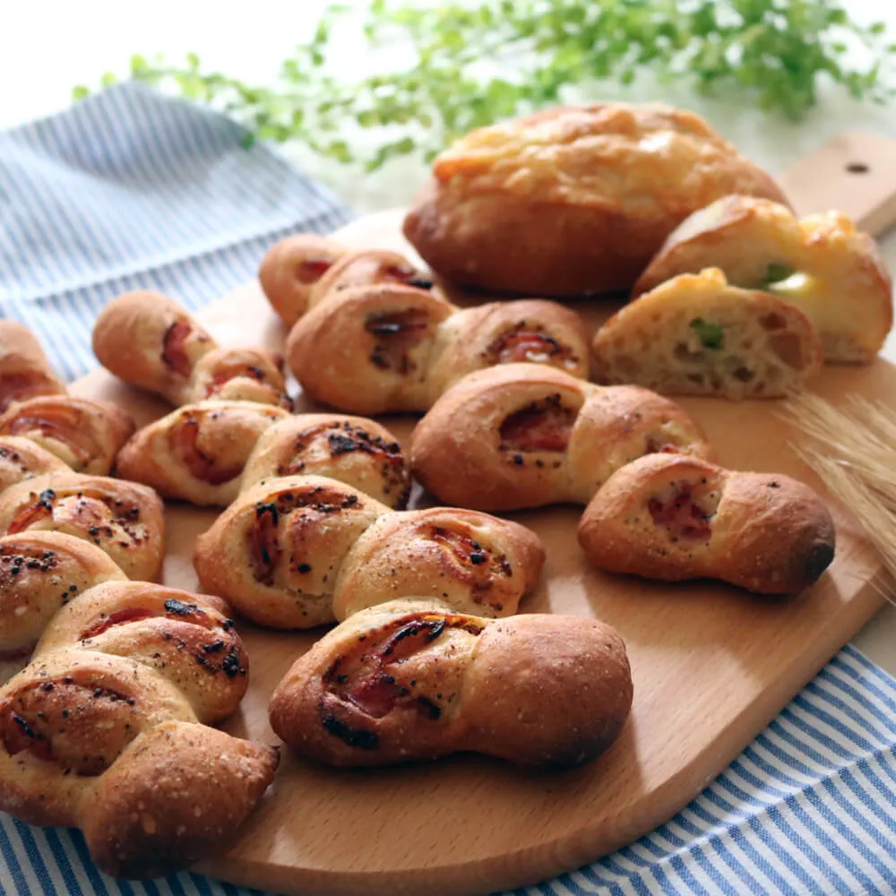 体験レッスンと基礎コース1回目は、お惣菜パンを作りながらパン作りの大まかな流れを学びます。